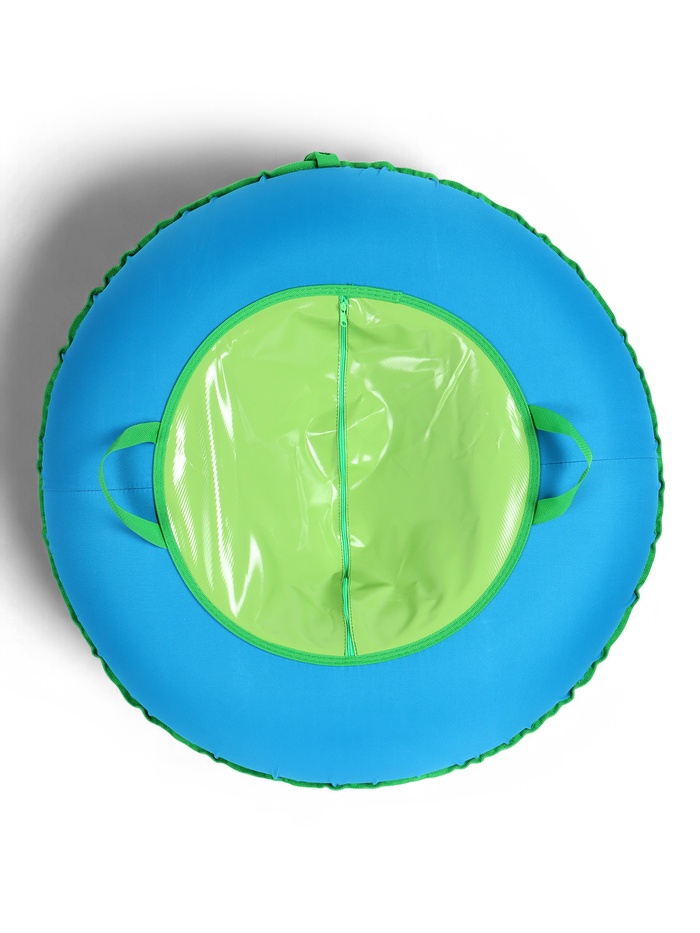 Тюбинг оснащён безопасными ручками. Его материал прослужит долго и обеспечит отличное скольжение. Фактический размер накачанного тюбинга зависит от температуры внешней среды и давления в камере.