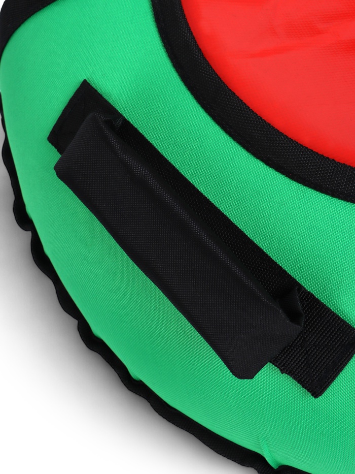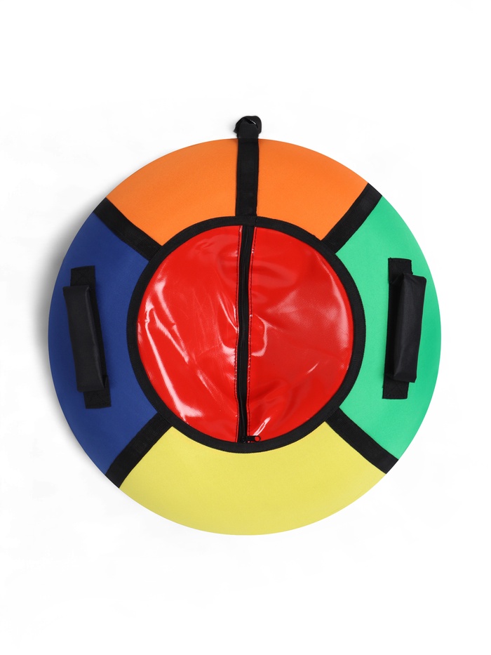 Дно тюбинга изготовлено из тентовой ткани 630 г/м², что гарантирует долгий срок службы и обеспечивает отличное скольжение. Тюбинг оснащён безопасными ручками и молнией для быстрого доступа к камере. Имеет закрытую сердцевину, что исключает попадание снега внутрь. Фактический размер накачанного тюбинга зависит от температуры внешней среды и давления в камере. Для тюбинга подойдёт камера 13 дюймов. Предназначен для детей от 3 лет.