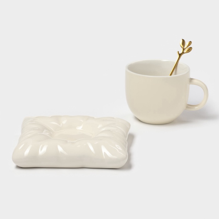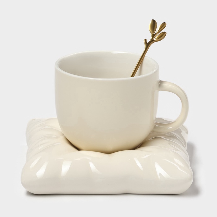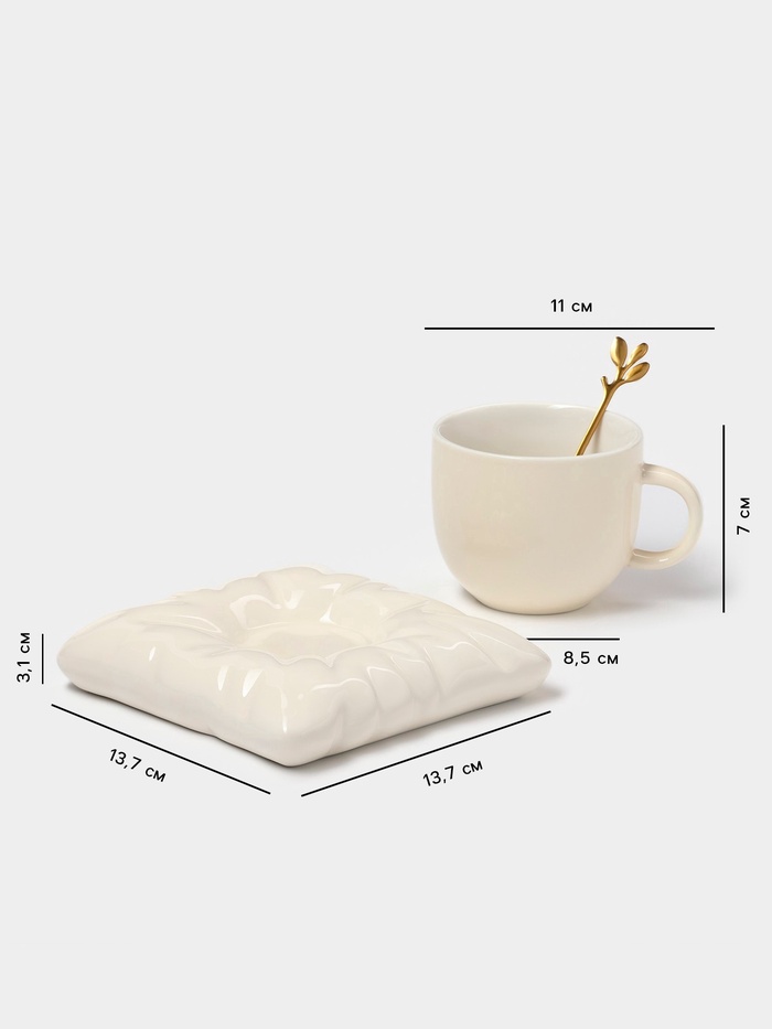 Чашка и блюдце в форме подушечки отлично подойдут в качестве подарка по любому поводу.