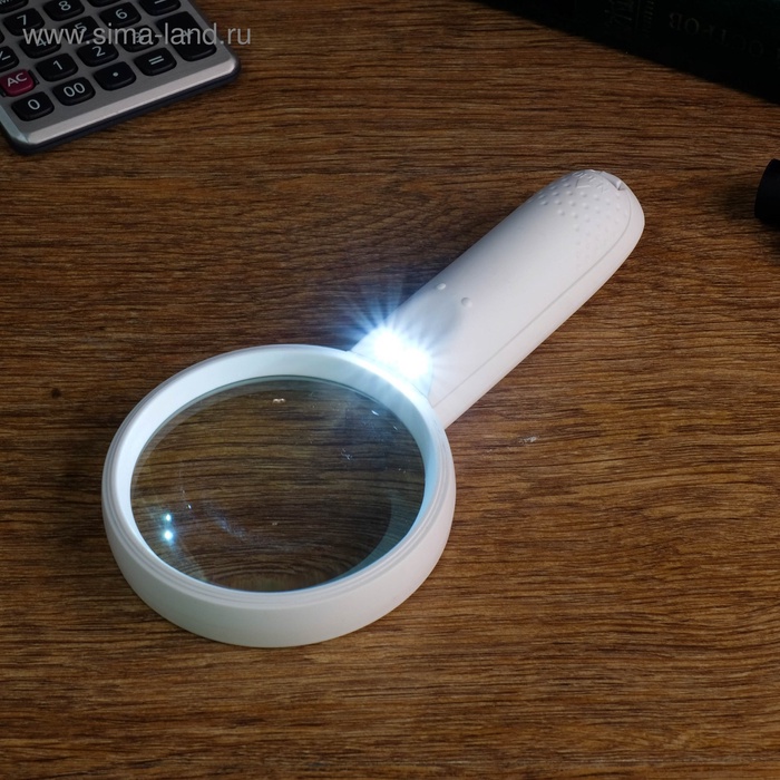 УЦЕНКА Лупа 3х, d=8 см, с подсветкой, 2 ААА, белая