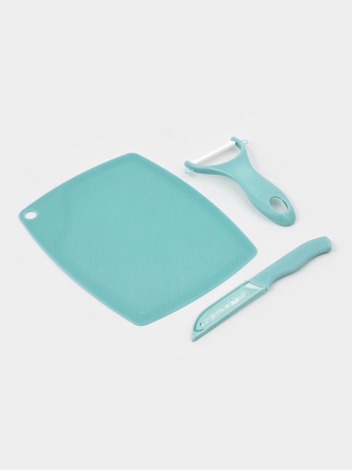 УЦЕНКА Набор "Керамик" 3 предмета: нож 16 см, овощечистка 12 см, доска 19,5х15,5 см, цвет голубой 44