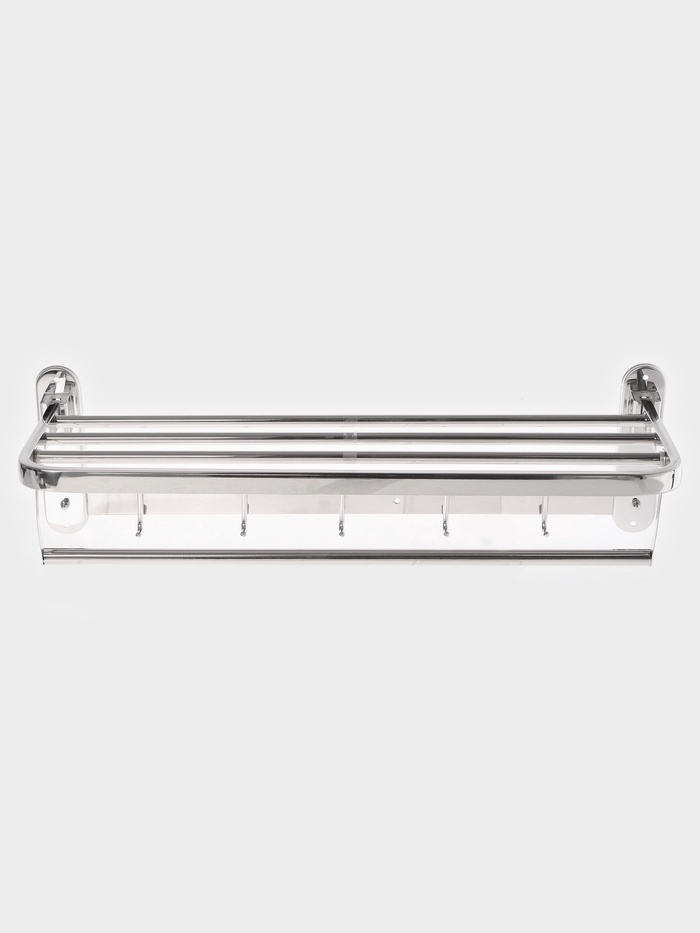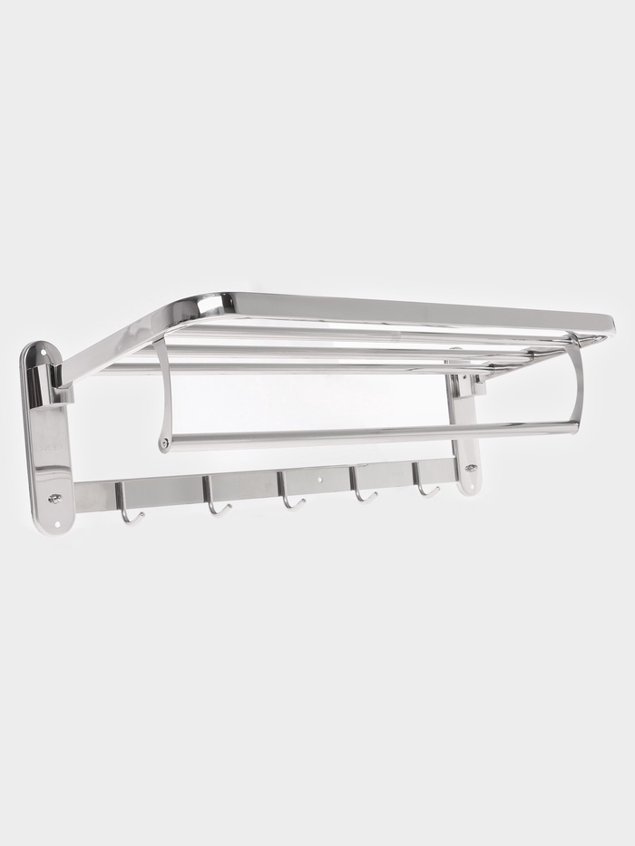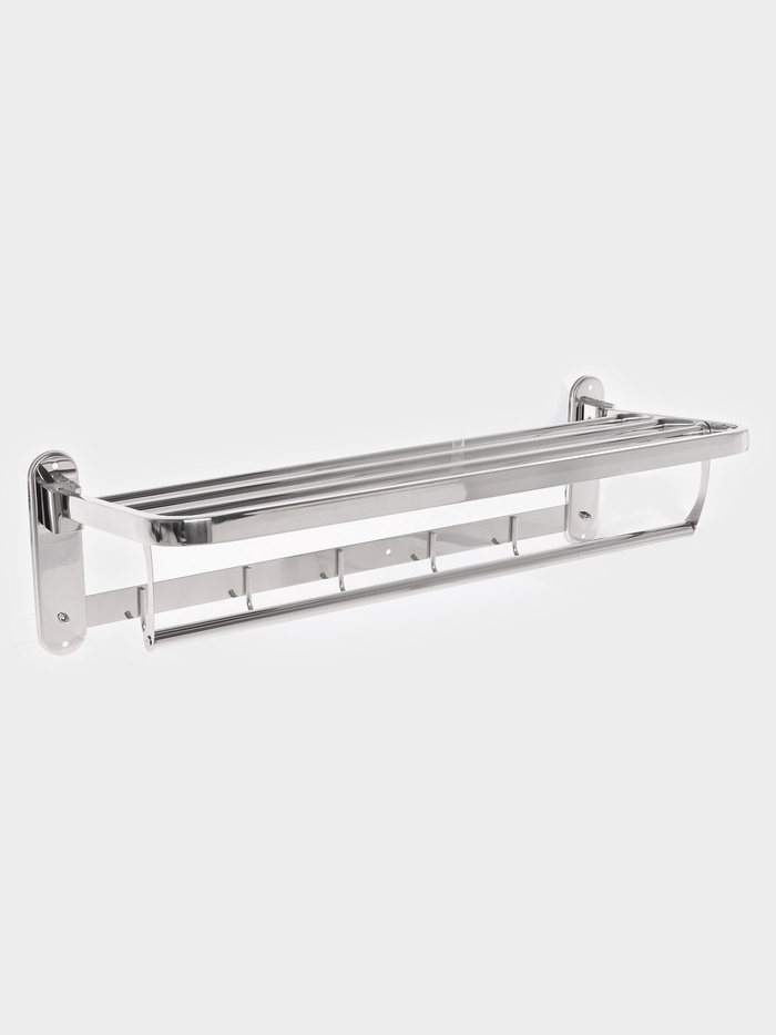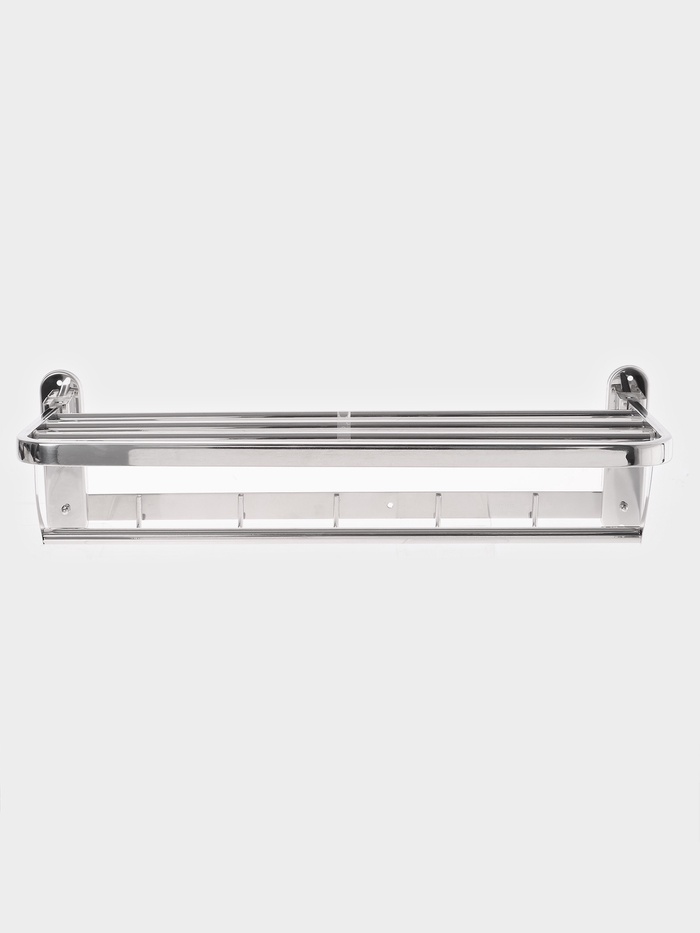 Полка для хранения полотенец — универсальное решение для ванной. Прочный и красивый металл впишется в любой дизайн помещения. Изделие покрыто специальным составом, который предотвращает коррозию.