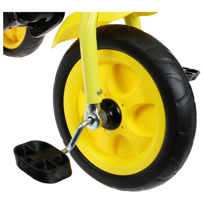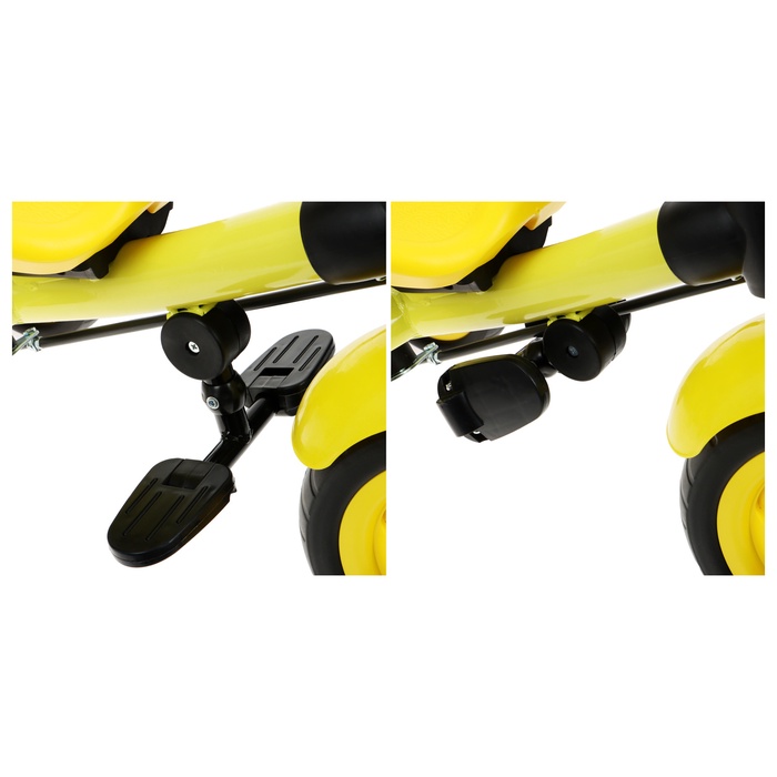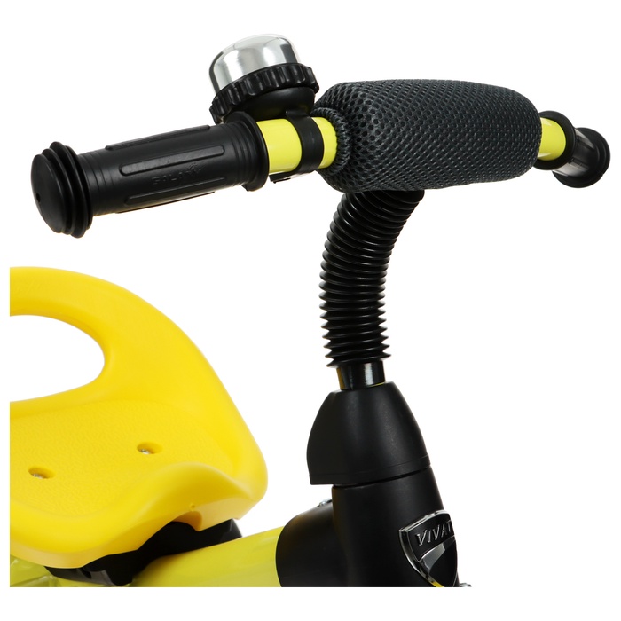 Трёхколёсный велосипед «Лучик Vivat 3» имеет родительскую ручку, которая позволяет управлять передним колесом. С помощью неё вы можете контролировать транспортное средство, пока ребёнок отдыхает. Чтобы ноги малыша не волочились по земле, под сиденьем установлена складная подножка.