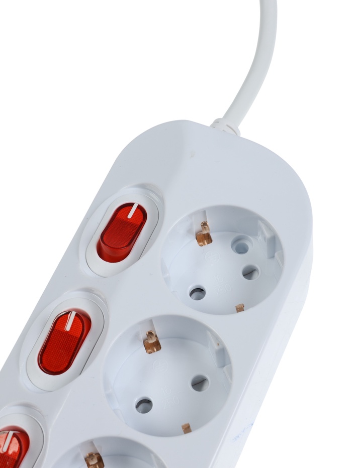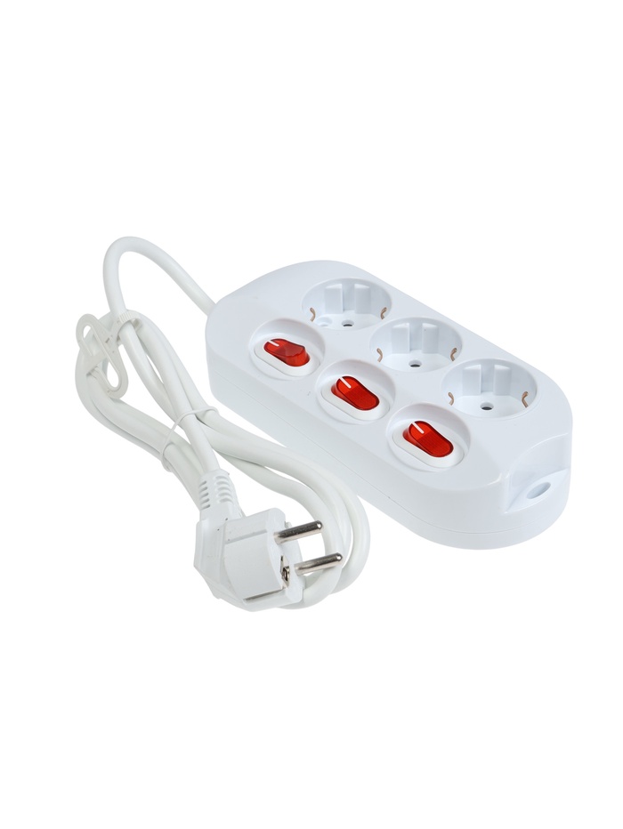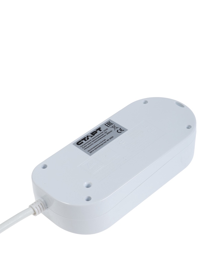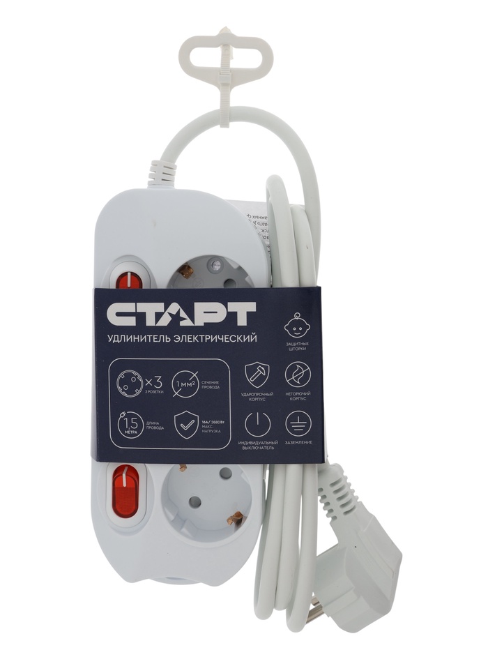 Удлинитель СТАРТ, 3 розетки, 1.5 м, 16 А, ПВС 3×1 мм2, с заземлением, индивидуальные кнопки включения, IP20, белый