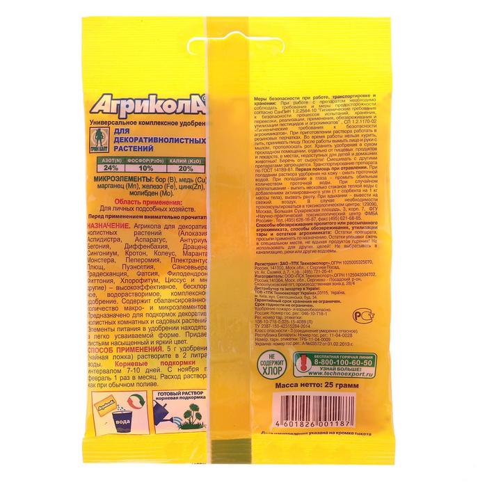Предназначено для Алоказии, Аспидистры, Аспарагуса, Антуриума, Бегонии, Диффенбахии, Драцены, Сингониума, Кротона, Колеуса, Маранты, Монстеры, Пеперомии, Плектрантуса, Плюща, Пуэнсетии, Сансевьеры, Традесканции, Фатсии, Филодендрона, Фиттонии, Хлорофитума, Циссуса и мн. других. Стимулирует активный рост растений, придает листьям яркую сочную окраску.