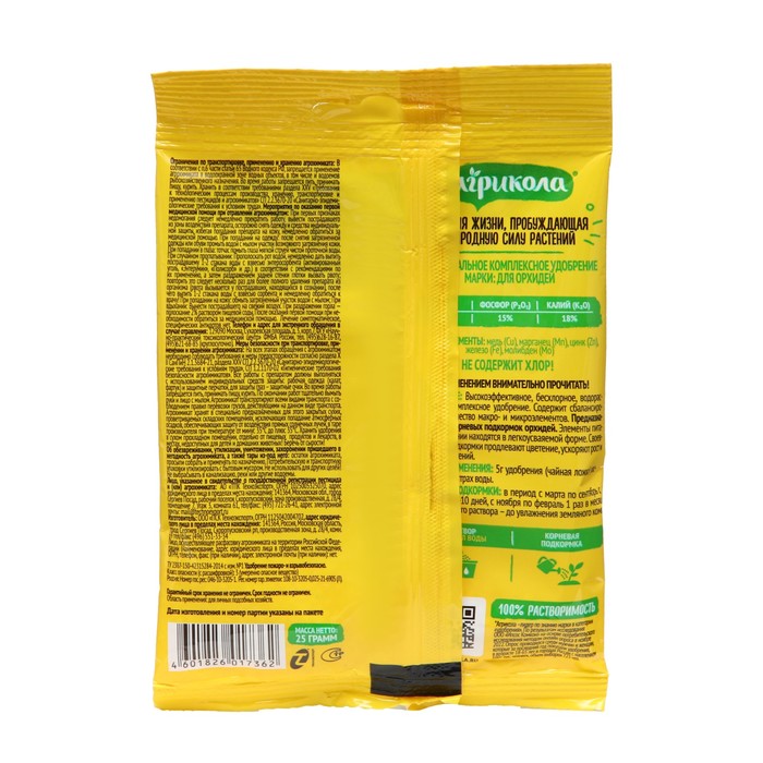 Отличается сбалансированным содержанием микро- и макроэлементов (N, P, K, B, Cu, Zn, Mg, Fe, Mo), которые хорошо усваиваются орхидеями.