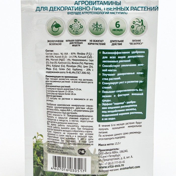 Высокоэффективное удобрение для всех видов декоративно-лиственных растений.