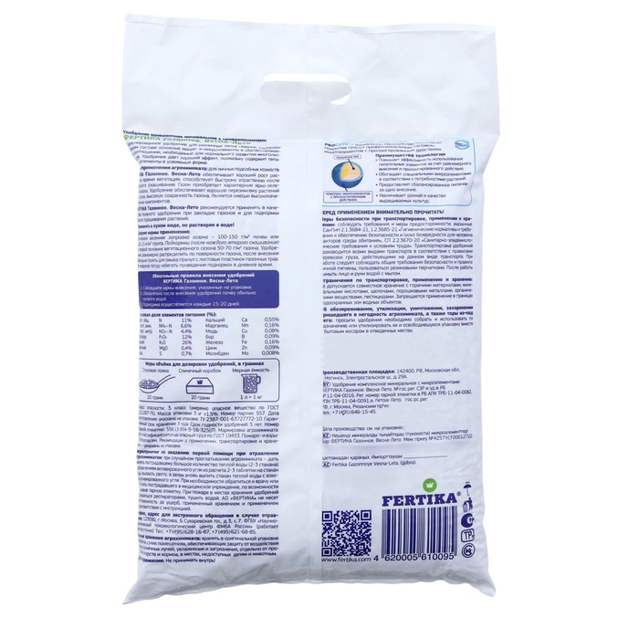 Fertika «Газонное» — это комплексное гранулированное удобрение.
