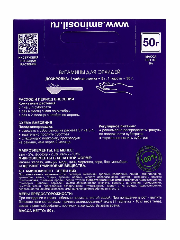 Цветы — как прекрасные живые драгоценности вашего дома! Комплексная добавка для орхидей в гранулах«Аминосил» (50 г) – это отличный уход для ваших цветущих питомцев, разработанный специально для улучшения их роста и цветения.