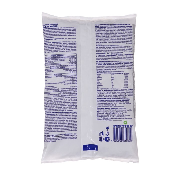 Идеальный выбор для сада и огорода: Удобрение «Сульфат калия» от Фертика – это надежный способ поддержать здоровье растений и повысить их урожайность. Подходит как для опытных садоводов, так и для новичков. Позаботьтесь о своих растениях – обеспечьте им крепкий иммунитет и устойчивость к неблагоприятным условиям!