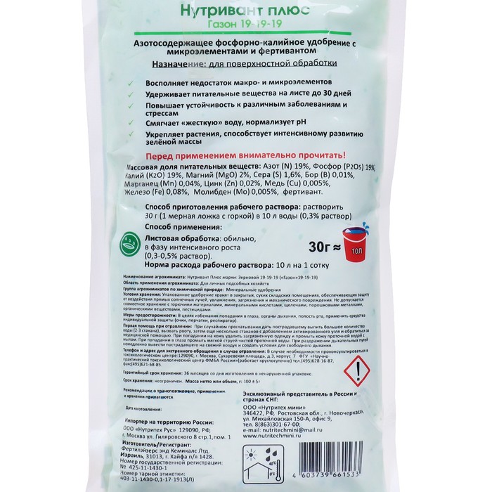 Профессиональный уход: Удобрение 3 класса опасности требует использования перчаток при работе. «Нутривант Плюс» — выбор тех, кто ценит ровное травяное покрытие без желтых пятен и редкой растительности. С ним ваш газон будет выглядеть ухоженным весь сезон.