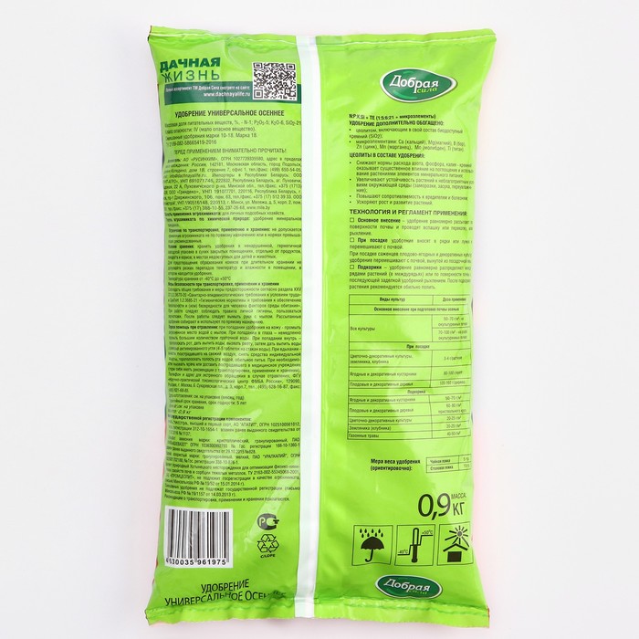 Удобрение обогащено цеолитами, содержащими биодоступный кремний.
