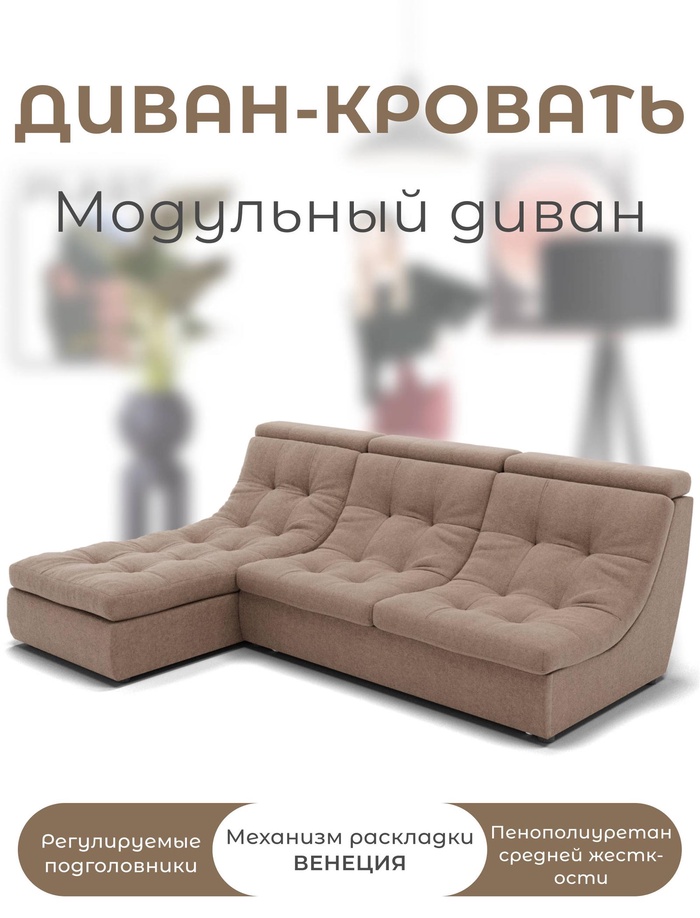 Угловой модульный диван «Монако 3», ППУ, механизм венеция, велюр, цвет квест 033