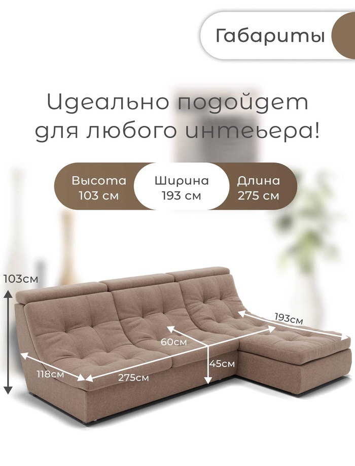 Угловой модульный диван «Монако 2», ППУ, механизм венеция, велюр, цвет квест 025