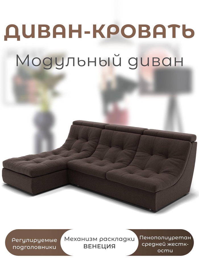 Угловой модульный диван «Монако 2», ППУ, механизм венеция, велюр, цвет квест 033