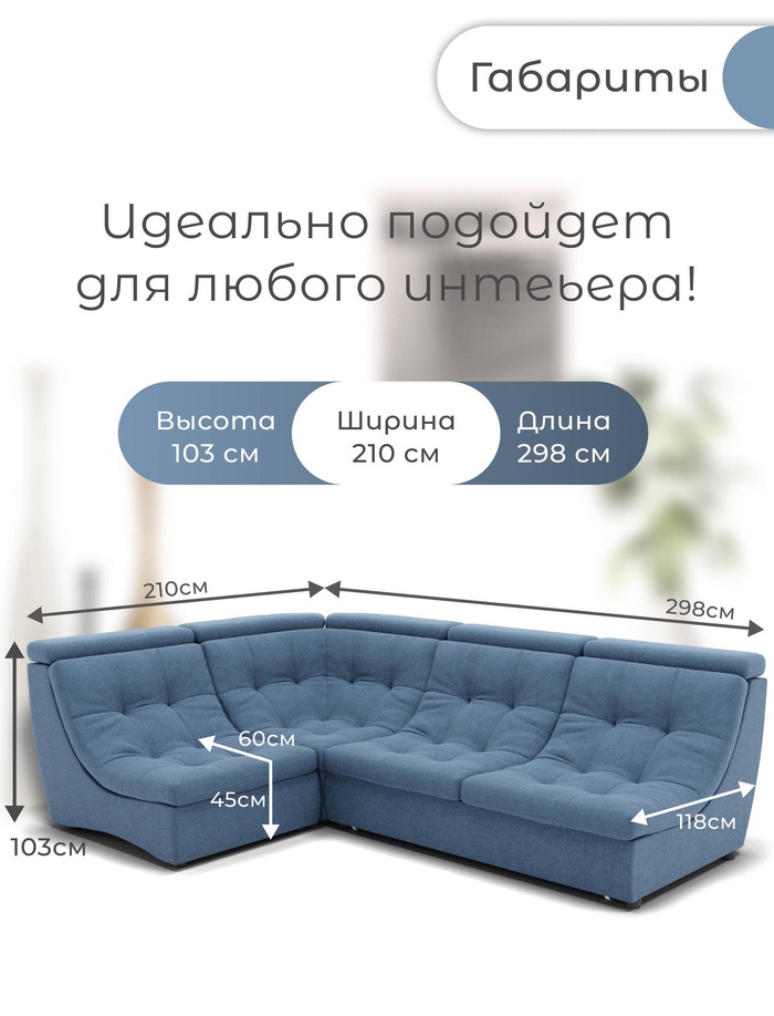 Угловой модульный диван «Монако 3», ППУ, механизм венеция, велюр, цвет квест 023