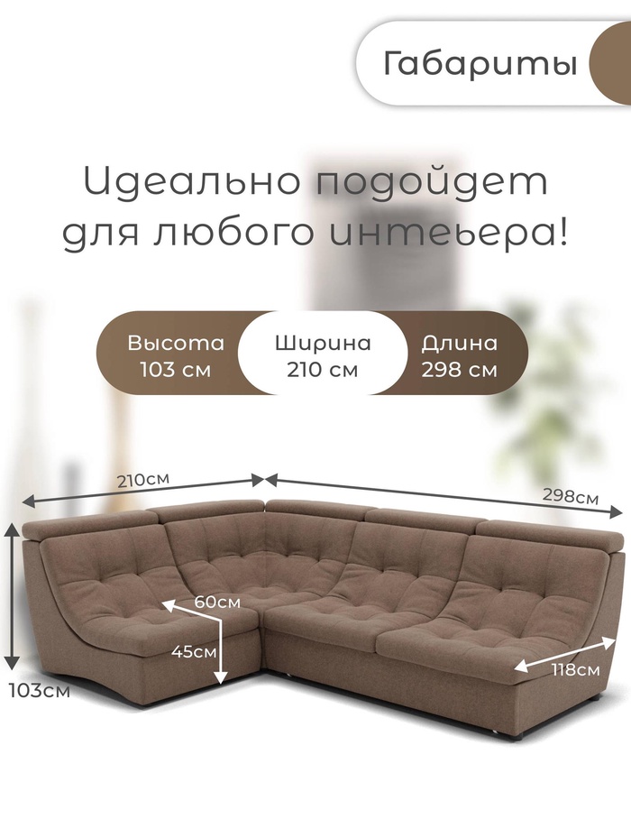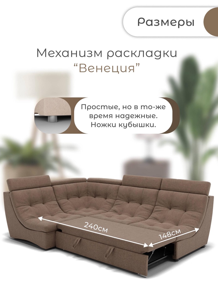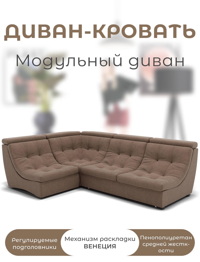 Угловой модульный диван «Монако 3», ППУ, механизм венеция, велюр, цвет квест 025