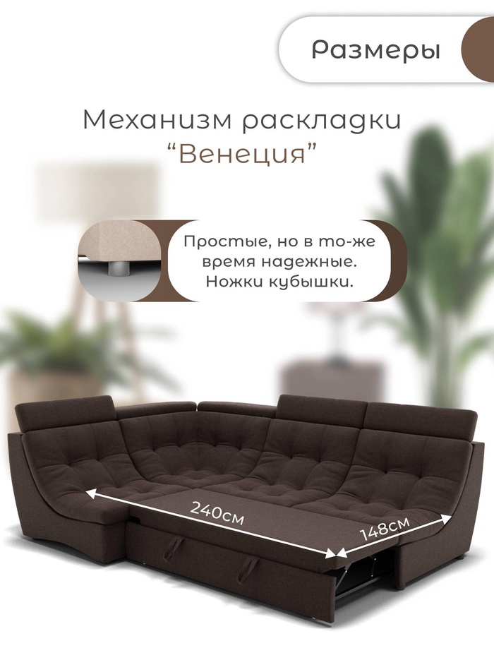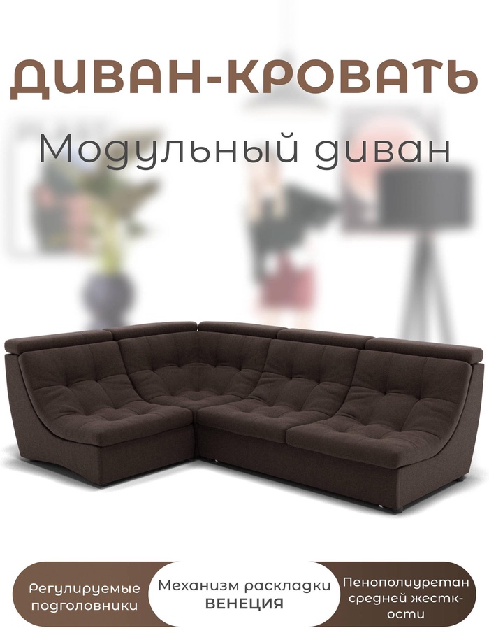 Угловой модульный диван «Монако 3», ППУ, механизм венеция, велюр, цвет квест 010