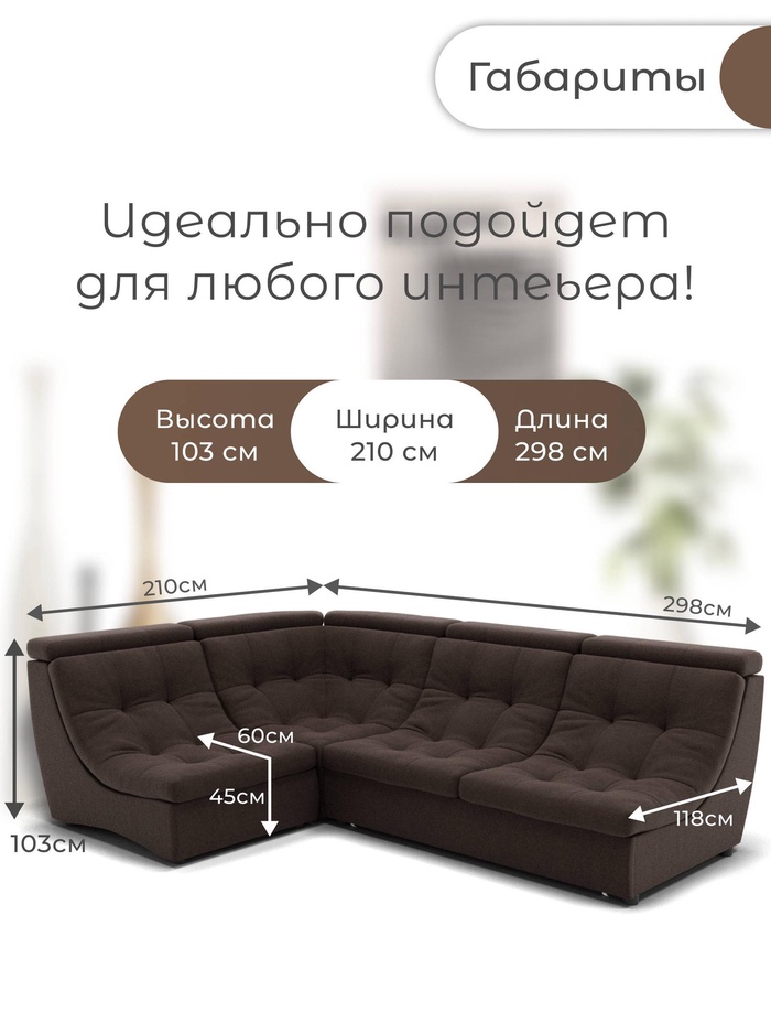 Угловой модульный диван «Монако 3», ППУ, механизм венеция, велюр, цвет квест 033