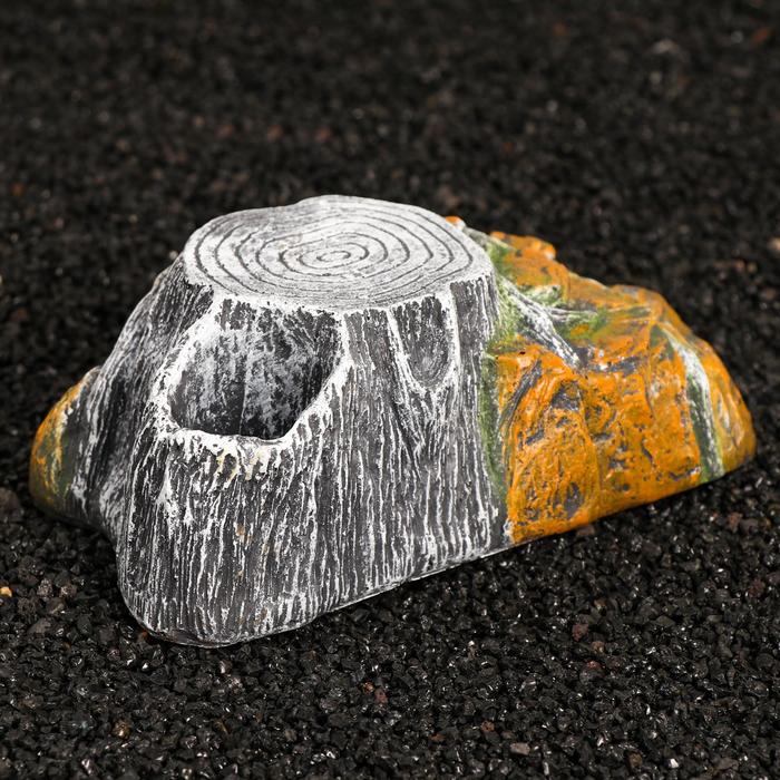 Эту декорацию можно не только использовать на поверхности, но и присыпать грунтом, тем самым создав настоящую подземную нору. Этот декоративный элемент очень удобно наполнять мхом, и регулярно увлажнять его для создание влажной камеры, где рептилия сможет с комфортом пройти период линьки без дополнительной помощи владельца.