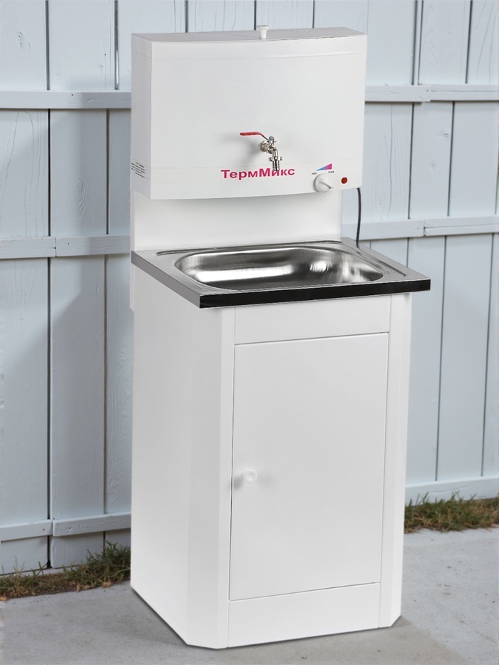 Умывальник "ТермМикс" подойдёт для использования на даче, в гараже, в мастерской и других местах без центрального водоснабжения. Мойка выполнена из нержавеющей стали.