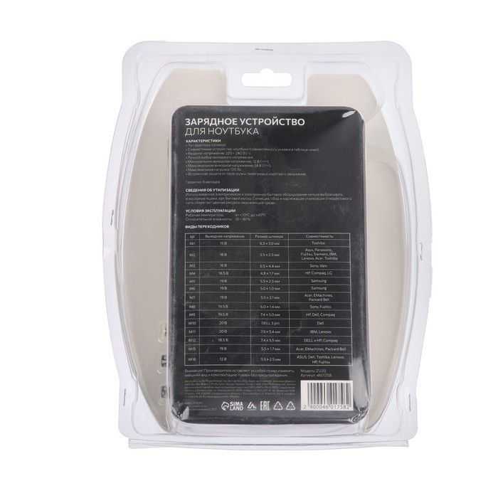 Универсальное зарядное устройство предназначено для обеспечения питанием аккумулятора ноутбука. В комплект входит 13 переходников разного диаметра и длины, поэтому прибор подойдет к большинству современных компьютеров.