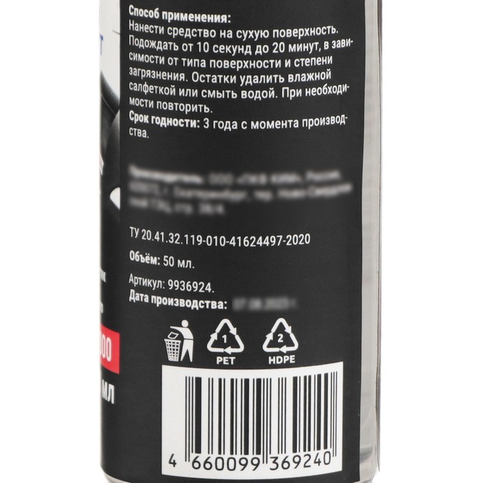 Внимание! Не использовать очиститель на лакированных поверхностях и инженерных пластиках. Средство их растворяет. Перед применением средство необходимо протестировать на незаметном участке.