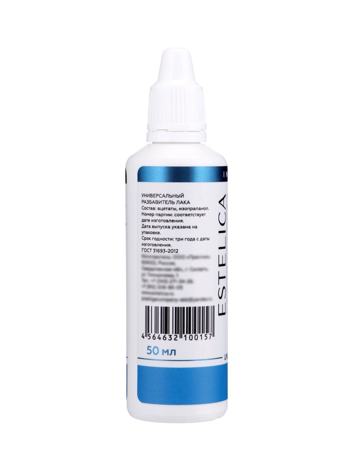 ESTELICA, универсальный разбавитель лака 50 мл (капельный дозатор) — профессиональное средство для восстановления первоначальной консистенции загустевшего лака или топа. Сохраняет структуру и цвет покрытия, не влияет на время высыхания и стойкость лака. Подходит для всех видов лаков для ногтей. Разбавитель можно использовать по мере необходимости, обеспечивая оптимальную текстуру продукта.