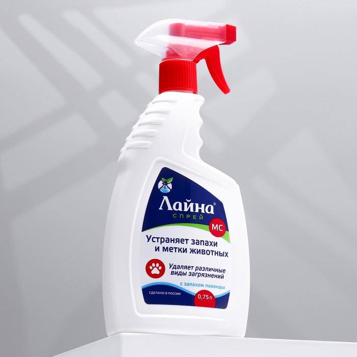 Универсальный спрей "Лайна-МС" от запаха и меток животных, лаванда, 750 мл. Предназначен для экстренного устранения запаха и следов мочи, фекалий, меток домашних животных с поверхностей. Устраняет и другие пятна от жировых и белковых загрязнений.
