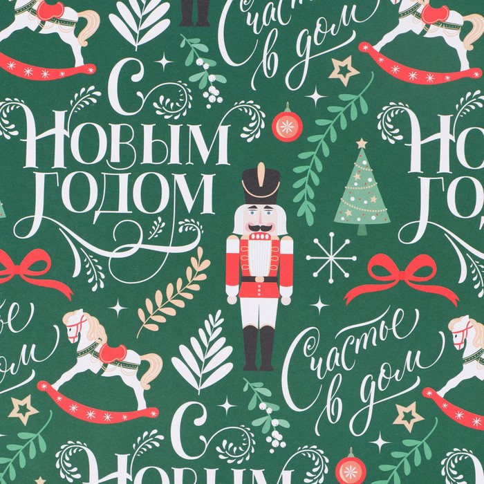Упаковочная бумага на новый год глянцевая двухсторонняя «Щелкунчик», 50×70 см