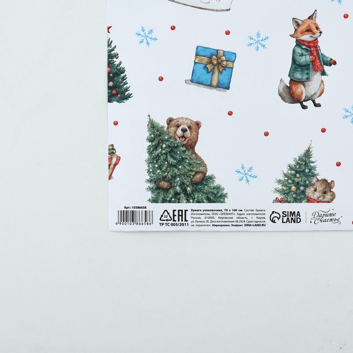 Упаковочная бумага на новый год крафтовая «Новогоднее настроение», 70×100 см