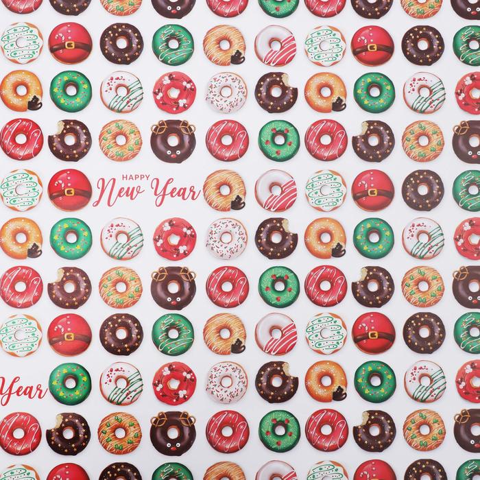 Упаковочная бумага на новый год «Новогодние пончики», 70 х 100 см, глянцевая