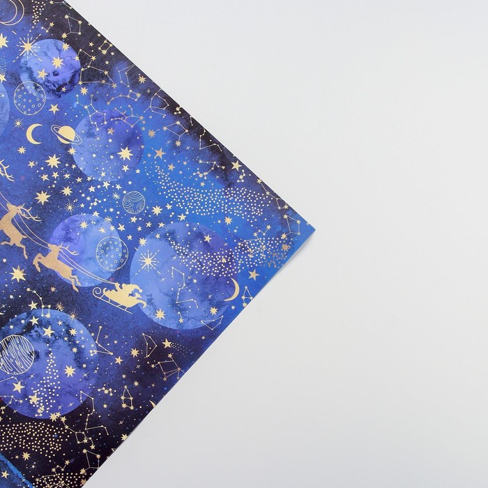 Упаковочная бумага на Новый год «Новогодний космос», 70×100 см, глянцевая