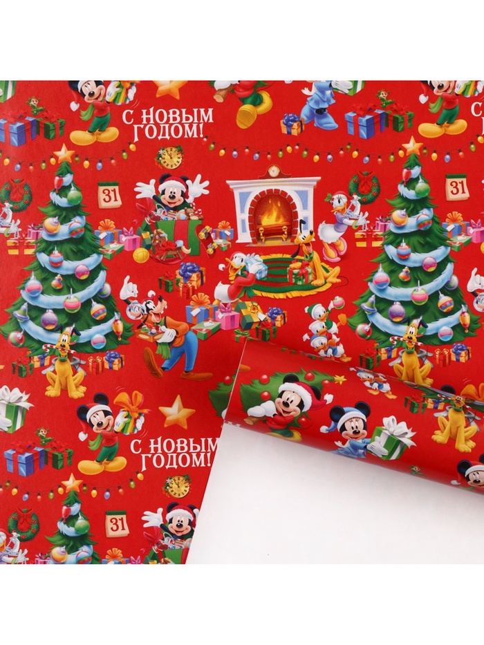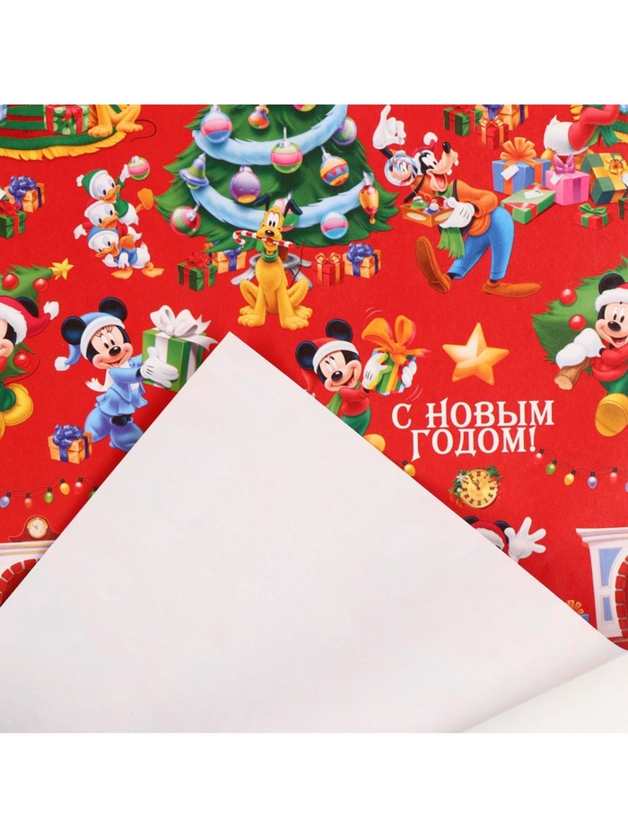 Упаковочная бумага новогодняя, 70 х 100 см, Микки Маус