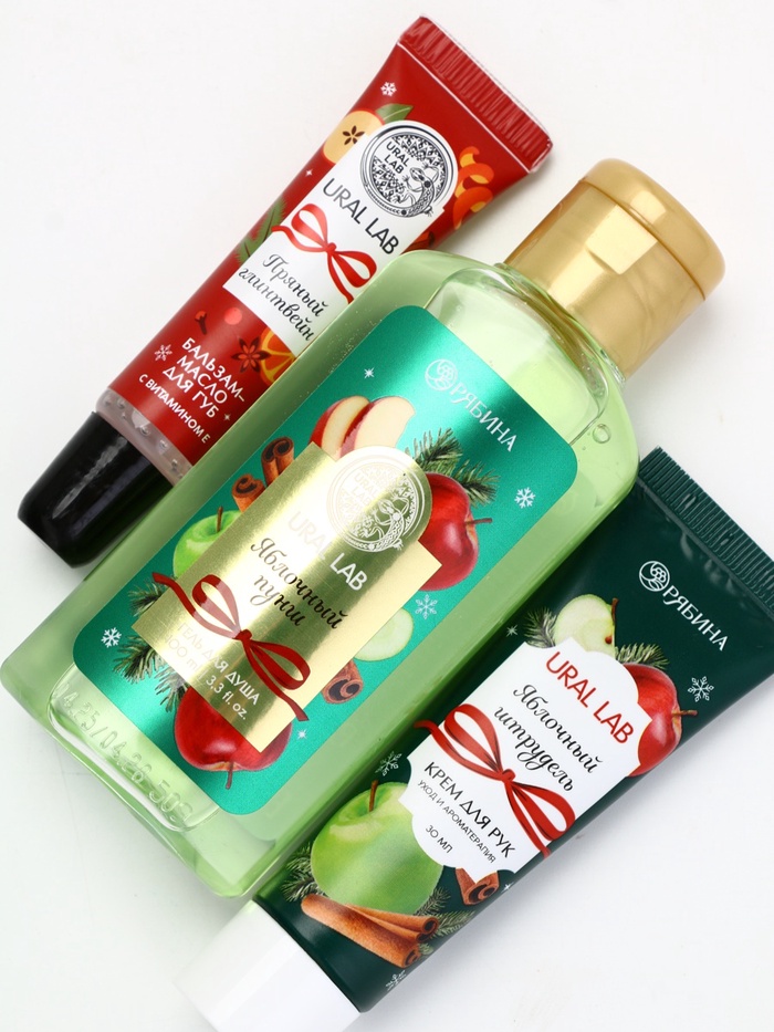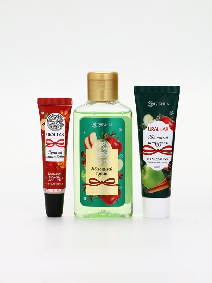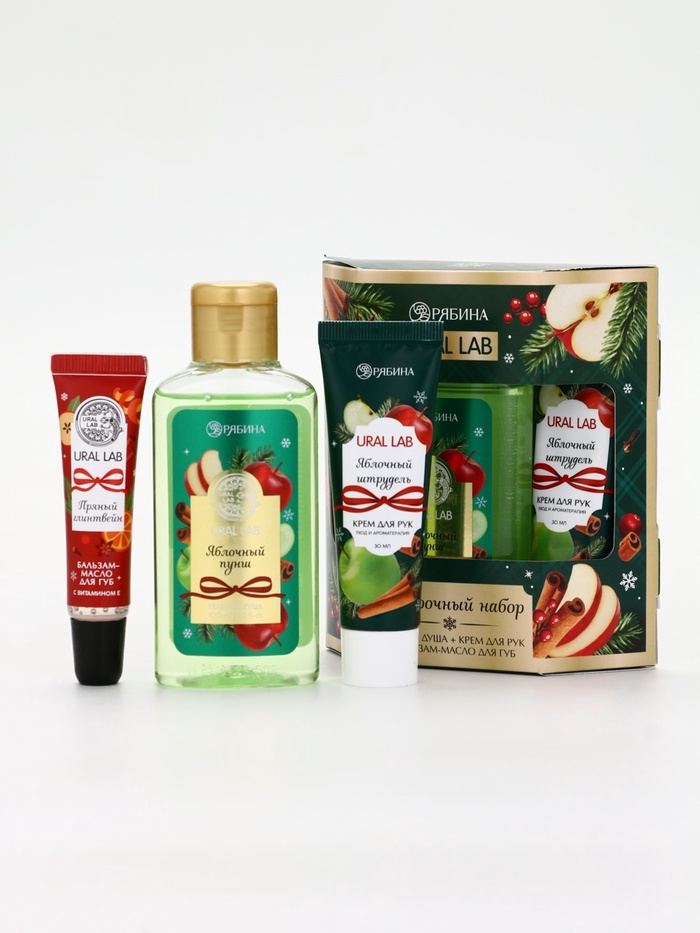 URAL LAB Арома Саунд Набор гель для душа, крем для рук и бальзам для губ, яблоко