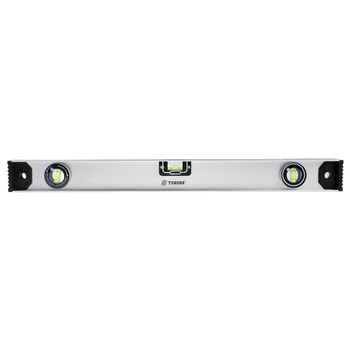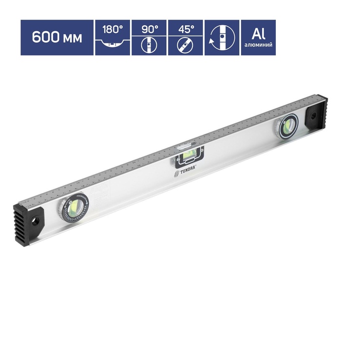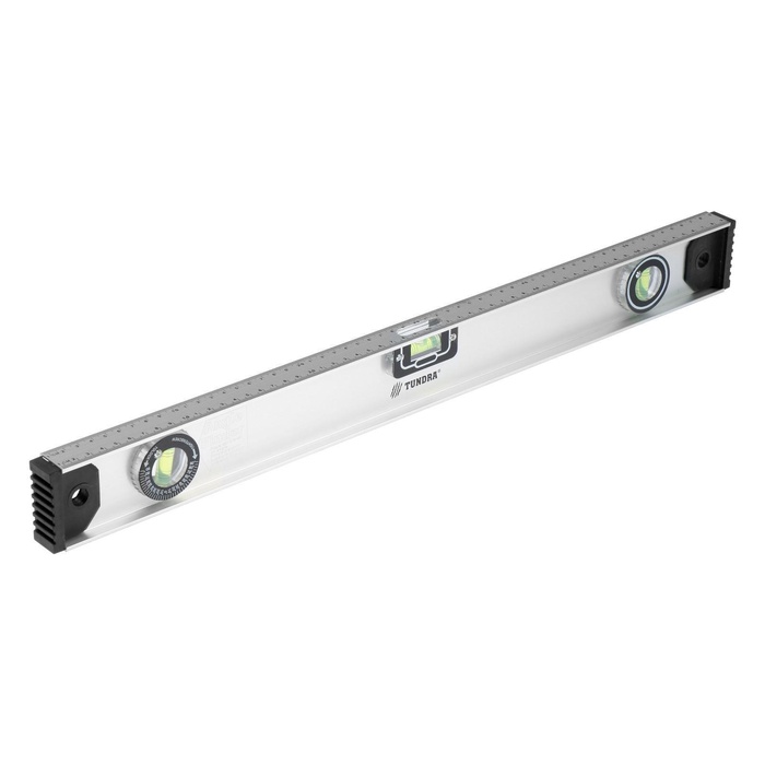 Строительный уровень ТУНДРА предназначен для проверки отклонений вертикальных и горизонтальных поверхностей. Благодаря сантиметровой разметке по всей длине профиля, его можно использовать в качестве линейки.