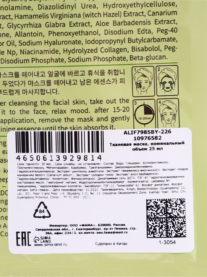 Успокаивающая маска для лица Sadoer "Олива", 25 мл