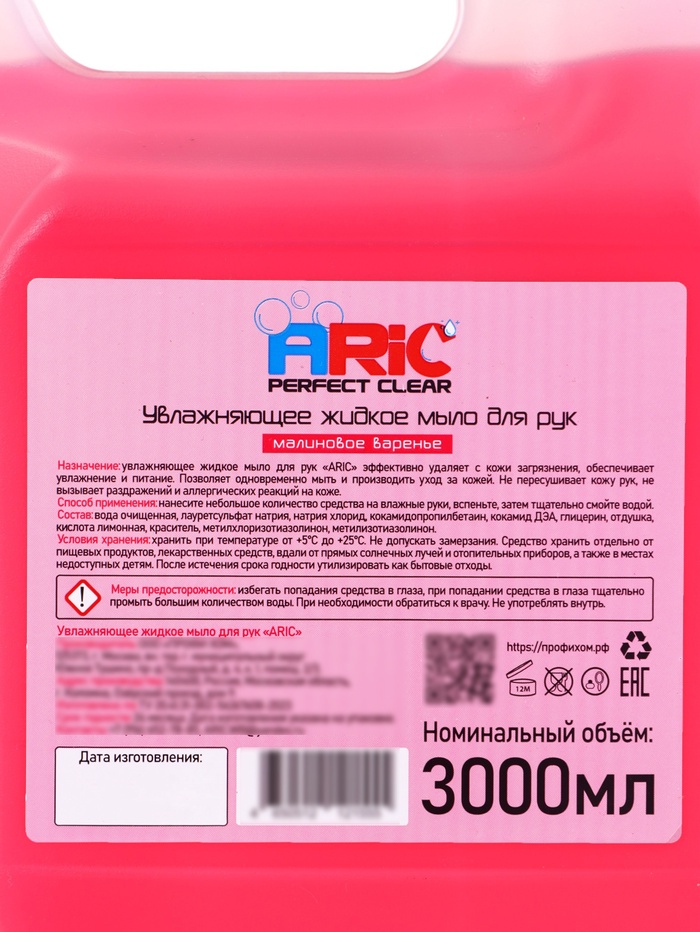 Увлажняющее жидкое мыло для рук ARIC "Малиновое варенье" 3л
