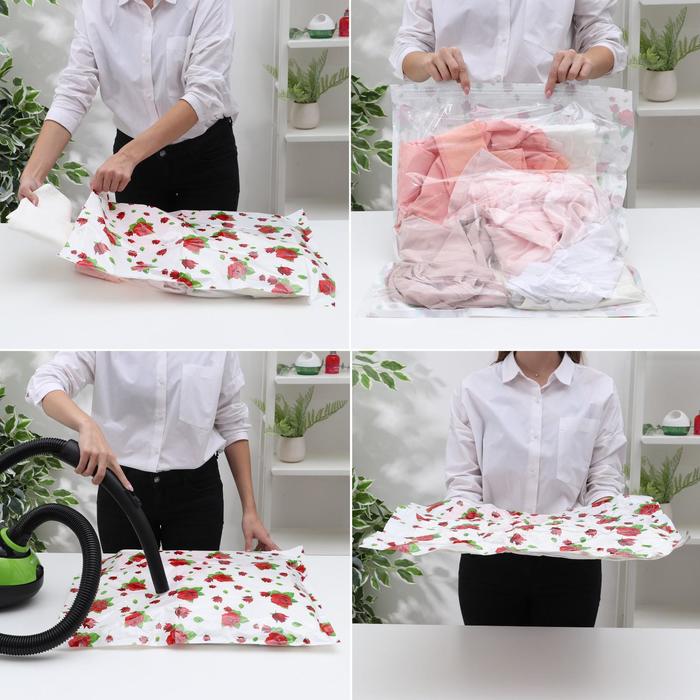 Упаковочные вакуумные пакеты отлично подходят для хранения вещей таким образом, чтобы они не занимали слишком много места. В действительности, пространство, занимаемое упакованной в такой пакет одеждой, уменьшается вплоть до 50-80%.