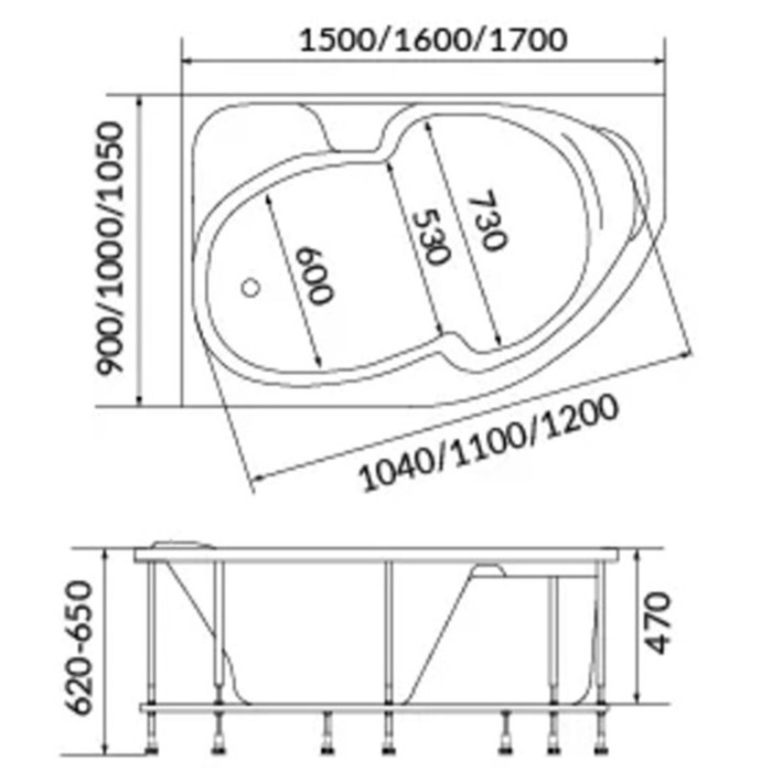 Ванна акриловая 1MarKa DIANA, 150х90 см, левая, без каркаса и панели