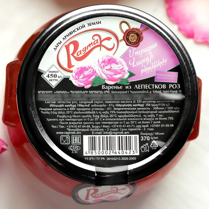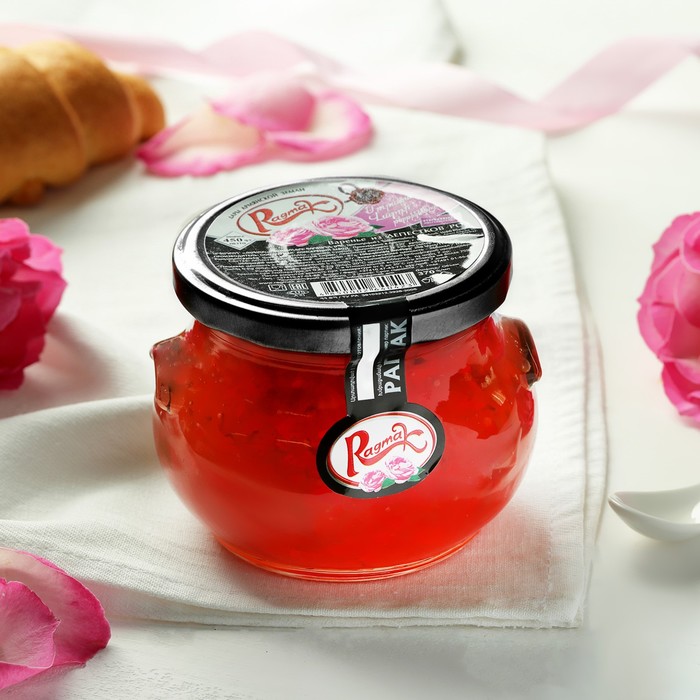 Состав: лепестки роз, сахарный сироп, лимонная кислота.