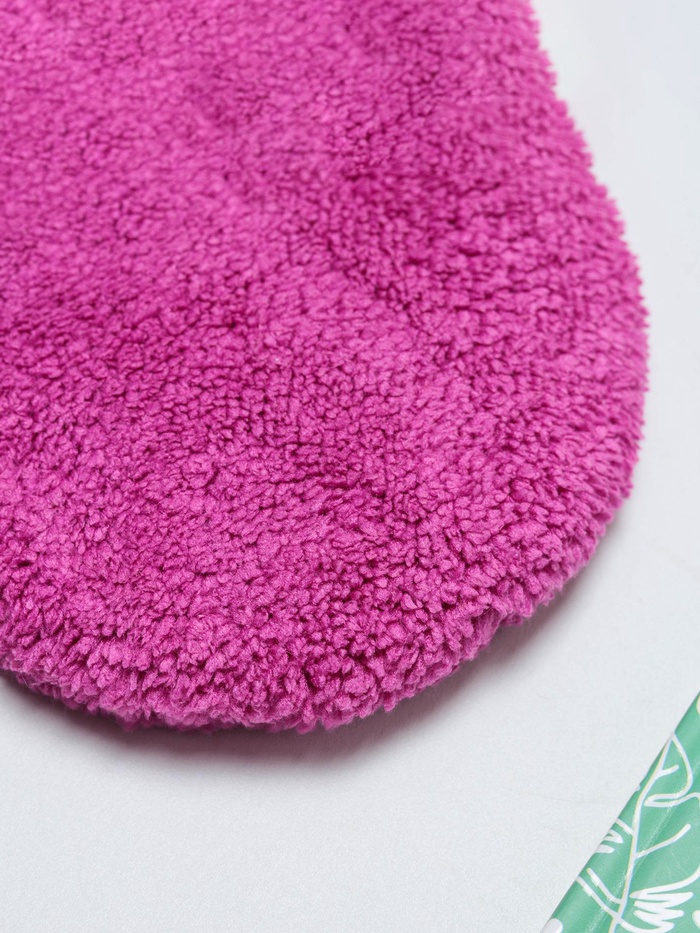 - При сильном загрязнении смочите изделие в слабом мыльном растворе. Обработайте поверхность. Прополощите варежку чистой водой, повторите процедуру.