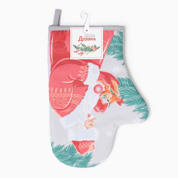 Варежка-прихватка новогодняя «Доляна. С новым годом», 20×28 см, 35% хлопок, 65% п/э, ватин 250 г/м²