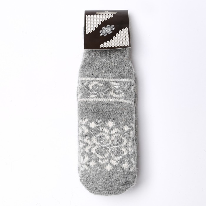 Варежки женские шерстяные, серые, белый, размер 20-22