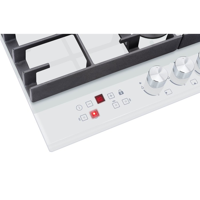 Каждая конфорка варочной поверхности HIBERG VM 6145 W оснащена функцией газ-контроль, которая обезопасит пользователя от вероятности воспламенения при утечке газа. Кроме того, в данной модели предусмотрен сенсорный индивидуальный таймер для каждой конфорки с возможностью отключения по заданному времени: от 1 до 99 минут.