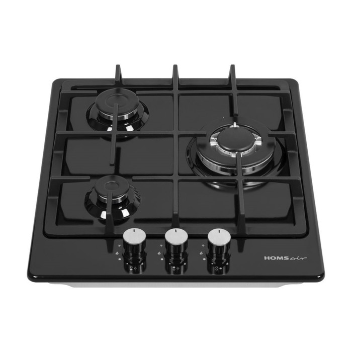 Варочная поверхность HOMSair HGE433TGCBK, газовая, 3 конфорки, чёрная