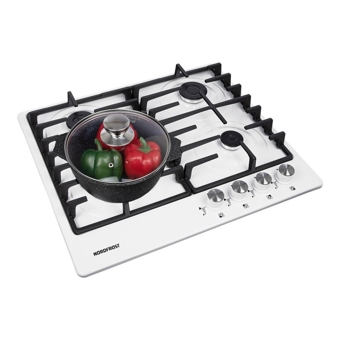 Варочная поверхность NORDFROST HS 6043 W, газовая, 4 конфорки, белый