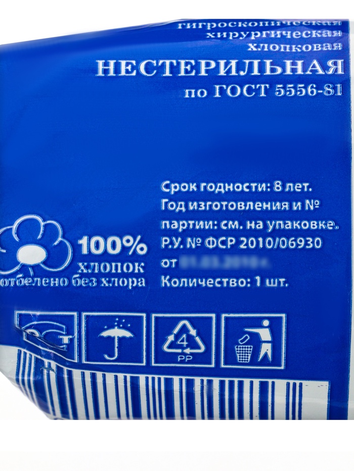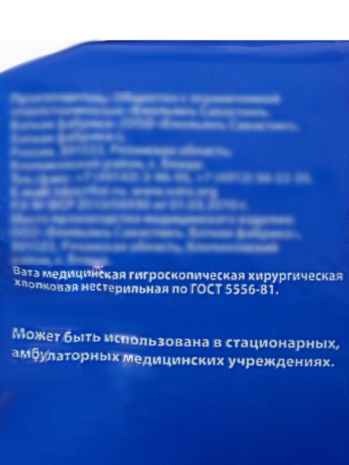 Вата медицинская хирургическая нестерильная используется в медицинских и гигиенических целях, производится из натурального длинноволокнистого сырья (волокна 100% хлопка высшей пробы) без добавления добавок и примесей. Вата хирургическая имеет высокую степень прочеса - что обеспечивает отсутствие сорных примесей и включений, по своей структуре легко распределяется на параллельные слои. Обладает высокой сорбционной способностью (эффективно впитывает и удерживает влагу). Вата медицинская хирургическая имеет идеально белый цвет и не содержит посторонних запахов. Отбеливание ваты производится в соответствии требованиям ГОСТа 5556-81 (без использования хлора и его компонентов).