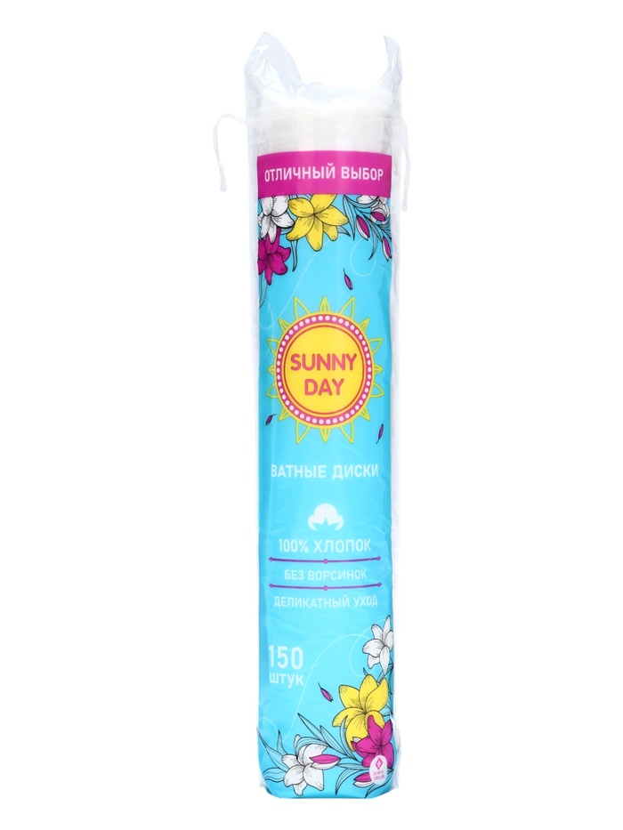 Ватные диски Sunny Day — идеальный выбор для вашего ухода за кожей! Эти диски мягкие, нежные и высококачественные, выполнены из 100% хлопка, что делает их подходящими для самых чувствительных типов кожи. В упаковке 150 дисков, каждый из которых идеально подходит для очищения лица, удаления макияжа или применения тоника. Прочные и не рассыпчатые, они обеспечивают комфорт и эффективность в использовании. Компактная упаковка и стильный дизайн делают их удобными для хранения и путешествий. Sunny Day — забота о вашей коже с каждым прикосновением!