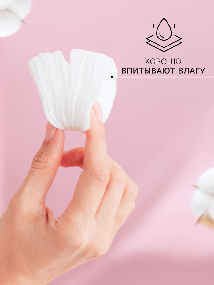 Высокая степень впитываемости позволяет эффективно удалять загрязнения и макияж.